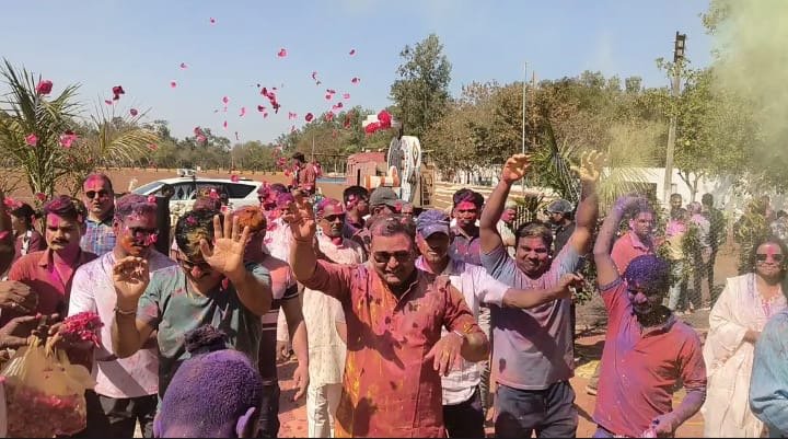 गुना पुलिस ने मनाई होली, रंगों में सराबोर हुए पुलिसकर्मी